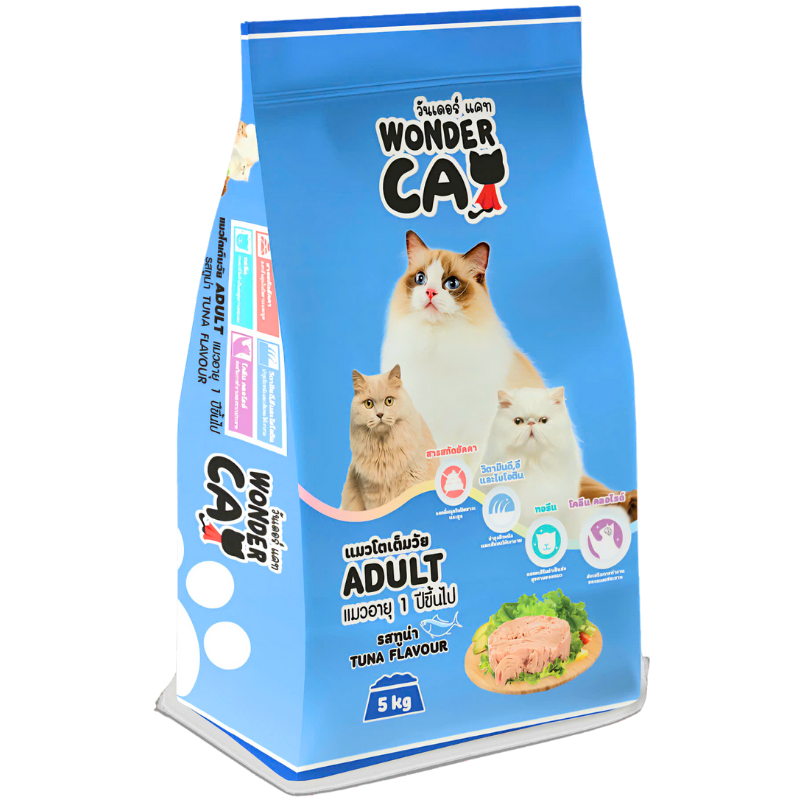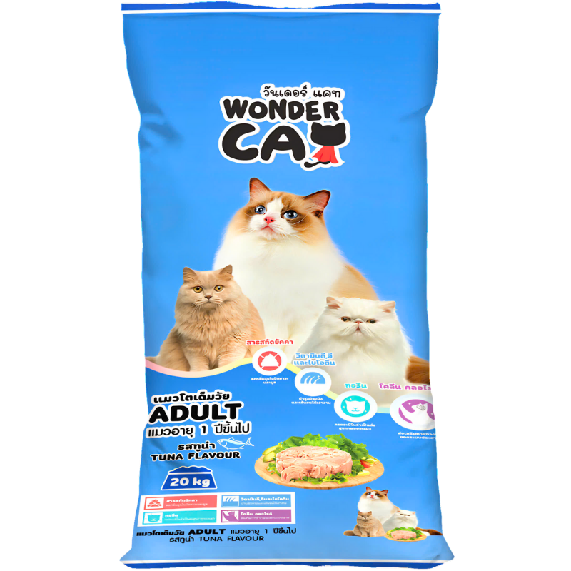 Wonder Cat Tuna Flavour là thức ăn khô dành cho mèo, được phát triển đặc biệt cho mèo nuôi trong nhà và chung cư. Công thức có hàm lượng muối trong thức ăn cực kì thấp và được chiết xuất Yucca giúp giảm mùi hôi trong phân và nước tiểu từ bên trong. Sản phẩm cung cấp đầy đủ dưỡng chất thiết yếu như Protein, Omega 3, DHA, Vitamin và khoáng chất giúp mèo phát triển toàn diện về thể chất, trí não, da lông và hệ tiêu hóa, đồng thời hỗ trợ bảo vệ thận và tim mạch khi sử dụng lâu dài.