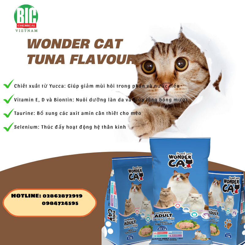 Thức ăn hạt WONDER CAT Tuna Flavour cho Mèo vị Cá Ngừ
